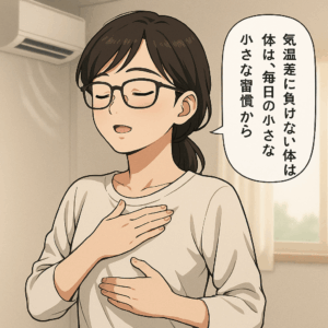 肩こりと気温差ストレスは、自律神経と血流のバランスが深く関係しています。