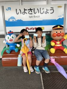 そしてJR松山駅から、娘がずっと楽しみにしていたアンパンマン列車に乗車。